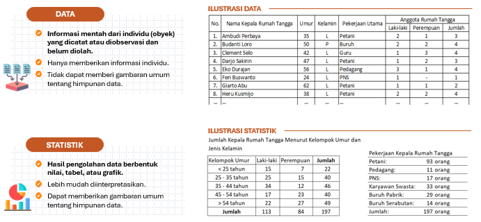 Statistik adalah data yang diperoleh dengan cara pengumpulan, pengolahan, penyajian, dan analisis serta sebagai sistem yang mengatur keterkaitan antar unsur dalam penyelenggaraan statistik.