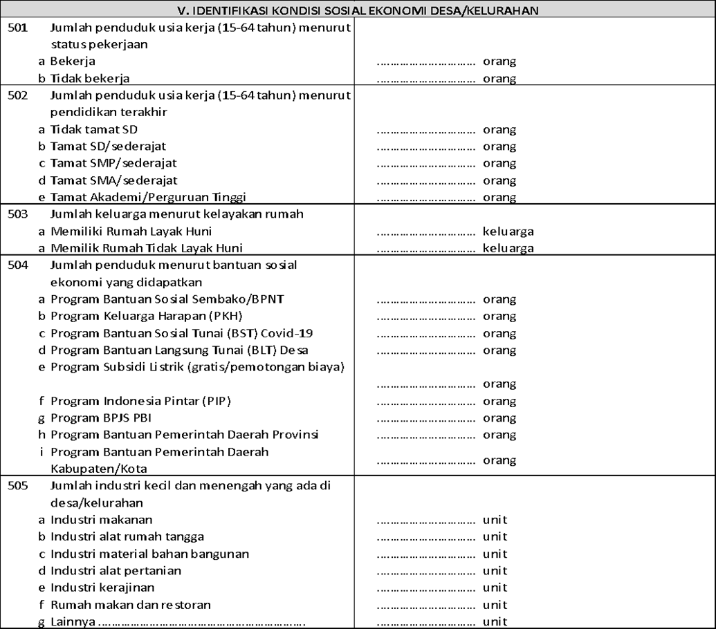 BLOK V: Identifikasi Kondisi Sosial Ekonomi Desa/Kelurahan
