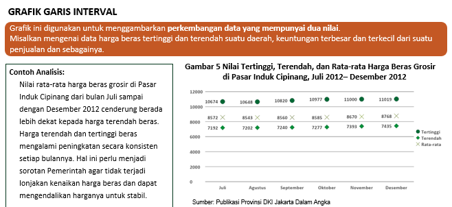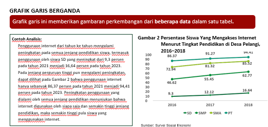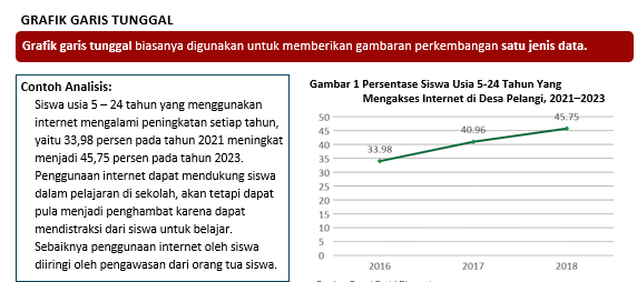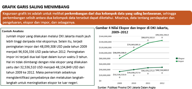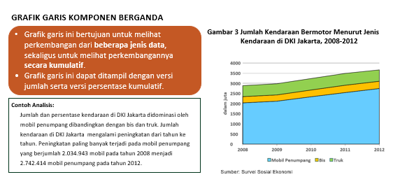 Grafik garis adalah grafik yang digunakan untuk menggambarkan perkembangan data secara kontinu. Pola atau kecenderungan data dapat dengan mudah kita ketahui dari grafik garis, yaitu dengan melihat arah garis yang menghubungkan titik-titik pada grafik tersebut. Pola yang disajikan dapat menurun, naik atau mendatar.